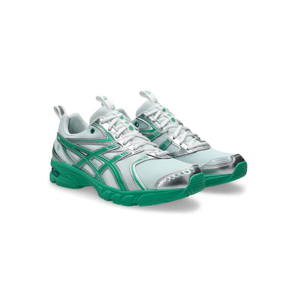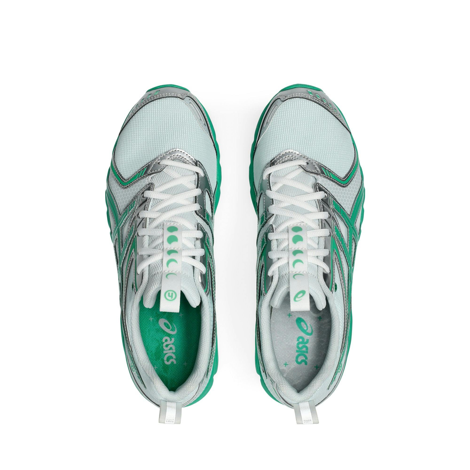 The Hidden Dawn is the next evolution in our partnership with ASICS - a DS Trainer 14 built for those drawn to first light. It merges precision performance tech with the quiet mysticism of the unseen, using layered mesh, reflective overlays, and structural synthetics that shift with movement. Every material was chosen for balance — lightweight, responsive, and intentionally stripped of excess. Silver and green accents trace the geometry of motion, inspired by the way light bends before sunrise- highlighting the tension between the organic and the engineered. Every panel, stitch, and vent channel is a study in balance - weight versus support, breathability versus speed. Hidden moon phases are woven throughout the design, marking cycles of renewal and passage. From the honeycomb mesh to the dual-density midsole, everything serves the pursuit of lightness in both weight and visuals. The layered upper blends performance fabric with quiet detailing meant to be discovered overtime. A trainer engineered for dawn chasers, distance runners, and those who move before the world wakes. 1203A974-100