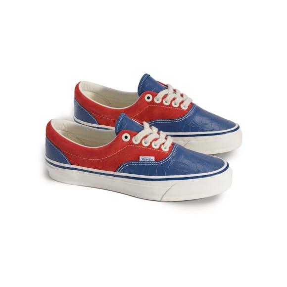 Blue/Red Croc Sneakers Premium upper leather Metal eyelets Vans flag label on side Classic waffle pattern Vibram outsole Lace closure SKU: VN000E8YGHP